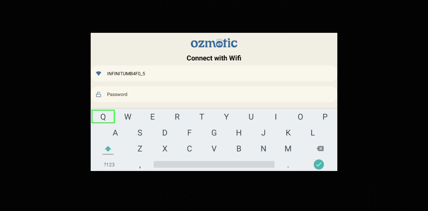 - Please follow the on-screen prompts to connect to your Wi-Fi network. Of note, the screen defaults to all caps (as shown in picture).